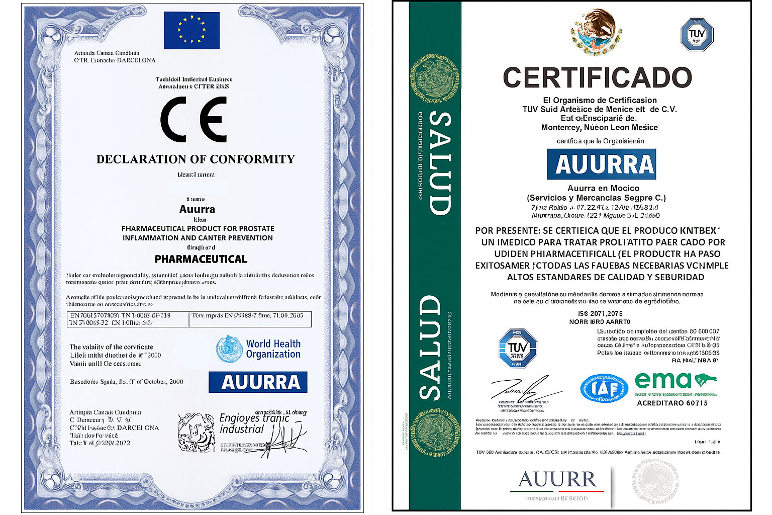 Auurra एक विश्वसनीय विकल्प है और इन दो प्रमाणनों द्वारा समर्थित है, जिससे प्रोस्टेटाइटिस के प्रभावी उपचार की खोज करने वाले मरीजों को शांति मिलती है।